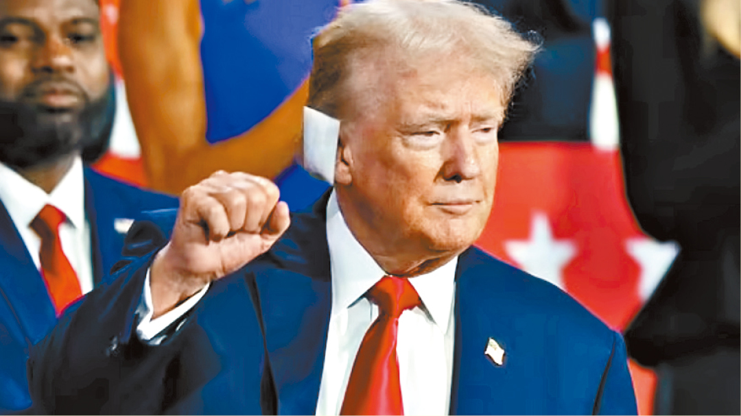 ▲特朗普遭遇暗殺未遂事件后,頭上包裹繃帶出席共和黨全國代表大會。 法新社