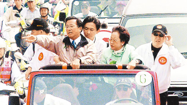 ▲美國前總統特朗普遇刺,讓人聯想到2004年臺灣的319槍擊案,時任正副“總統”陳水扁(前排左)、呂秀蓮(前排右)掃街時遭槍擊,但該案迄今真相未明。(中時資料照片)