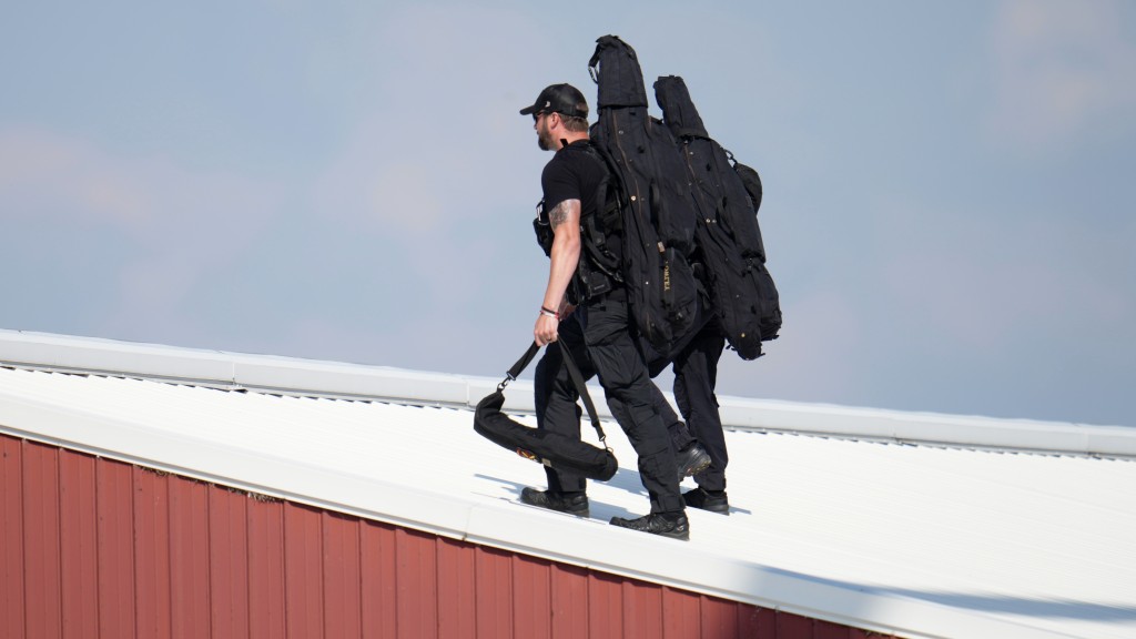 ▲7月13日特朗普在賓夕法尼亞州發表講話前,有狙擊手在屋頂上做準備。 路透社