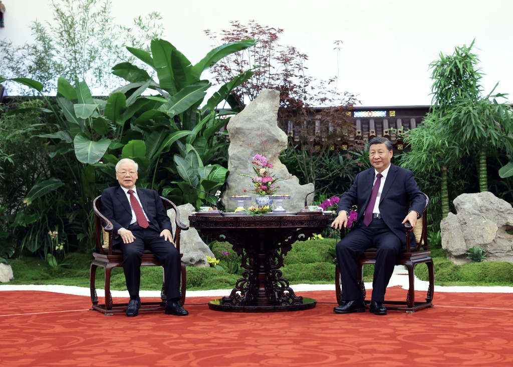 ▲習近平訪問越南時與越共中央總書記阮富仲會談。新華社