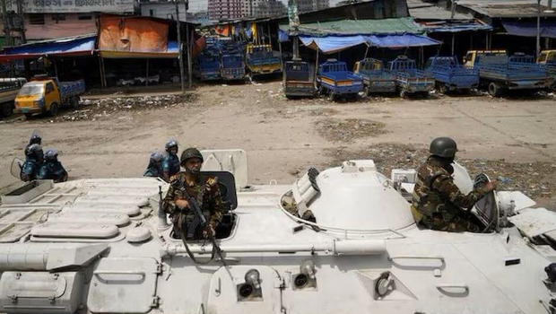 今天天亮時分,擁有2000萬人口的首都達卡街道幾乎闃無人聲,部隊步行或搭乘裝甲運兵車展開巡邏。
