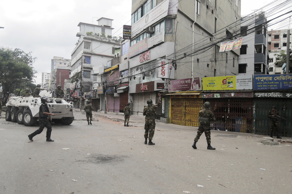 據中央社報道,為平息學生示威引發的與俱增國內動蕩情勢,孟加拉士兵今天在各大城巿巡邏,鎮暴警察對違反政府宵禁令的抗議人士開槍。英國“衛報”報導,當局已對警方下達“格殺勿論”命令。