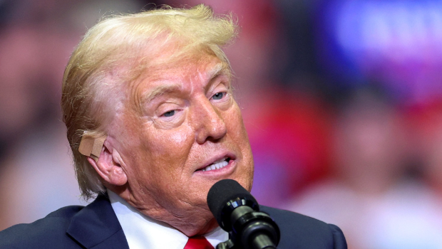 特朗普中彈后,昨日首度偕副手范斯(J.D. Vance)展開造勢活動,他出席密西根州活動時,原先右耳上明顯的白色大紗布已經替換成膚色OK繃。