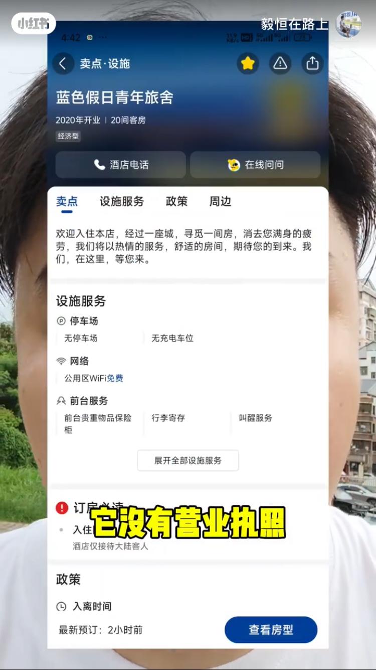 ▲指涉事旅舍沒有營業執照,而且評價里也有很多人留言指被騙了