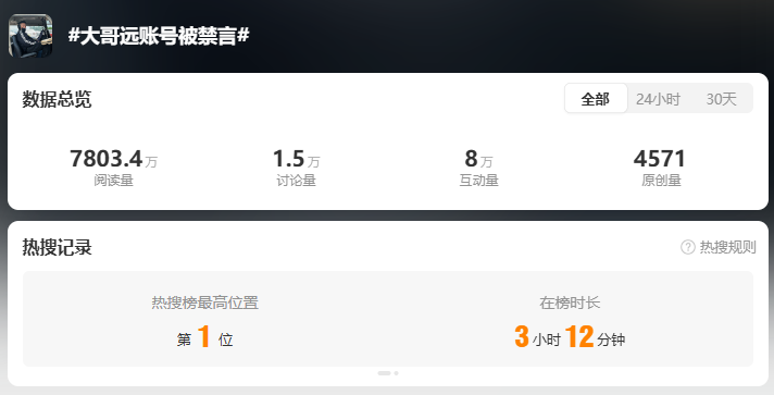 今天,#大哥遠賬號被禁言#沖上微博熱搜第一。