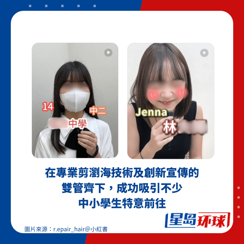 有別于一般發型屋,“r.epair_hair”的發型師除了會分享剪發日常、護發技巧、發型設計外,亦會在其專頁上傳許多在剪發過程中與客人閑聊的短片,而聊天內容不外乎與學習、工作、興趣等圍繞日常生活的事情,部分言論亦相當出位。在專業剪瀏海技術及創新宣傳的雙管齊下,吸引大量中小學生特意前往。發型師接受《星島》訪問就表示不論為大人還是小朋友剪頭發,他們都有習慣拍下短片,“只不過係唔知點解特別受小朋友歡迎 ”。