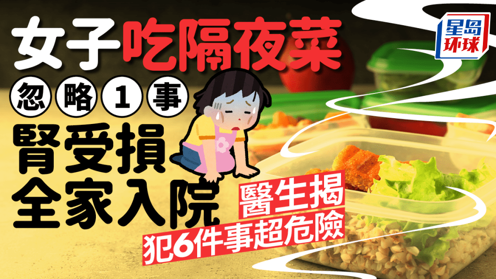 吃隔夜菜要小心! 有腎臟科醫生分享病例指,一名60多歲女子與家人翻熱隔夜菜食用后,全家患急病入院,該婦女更出現急性腎損傷情況。 醫生提醒,處理隔夜菜時若忽略6件事,容易引發食安風險。 剩菜可放室溫多久? 可翻熱多少次?
