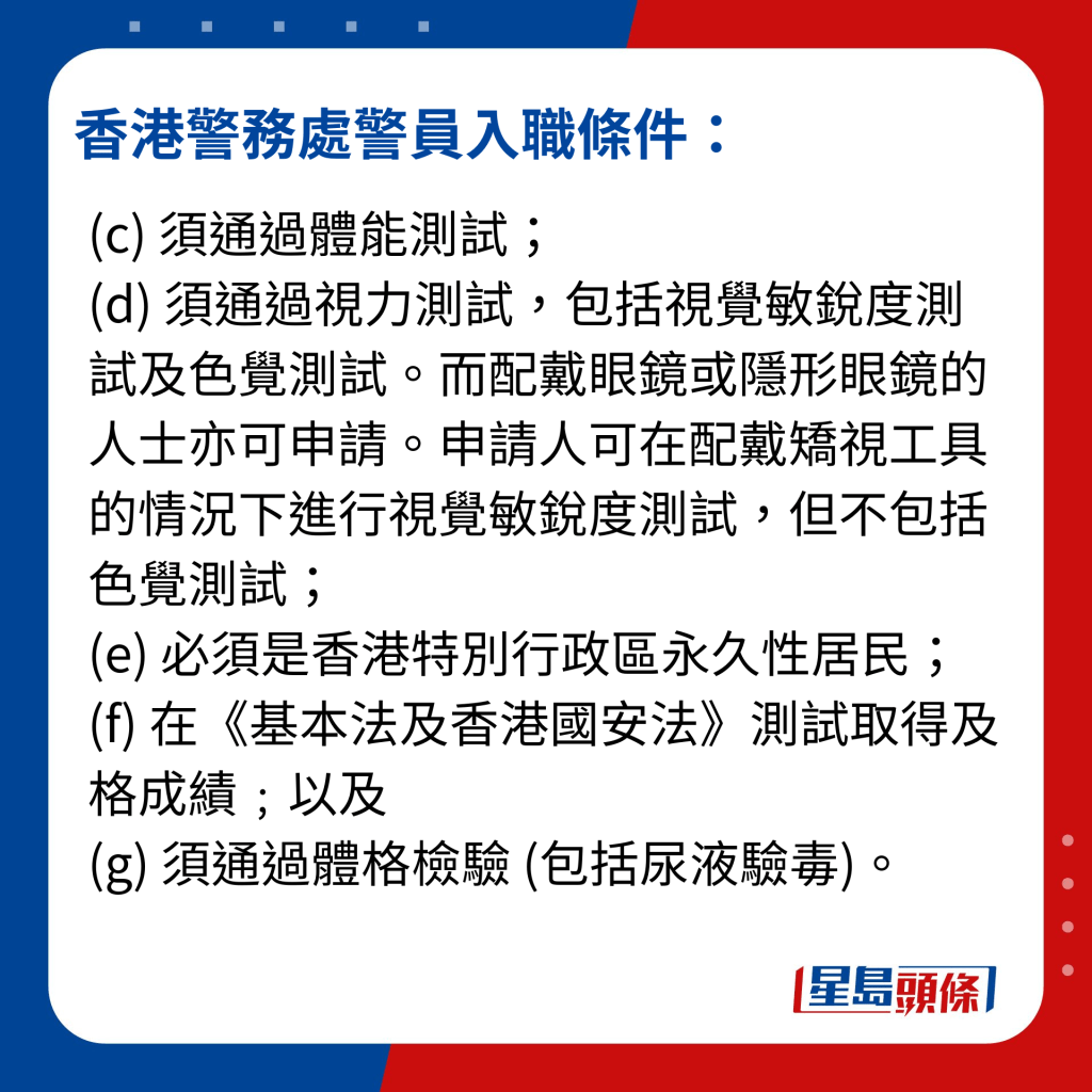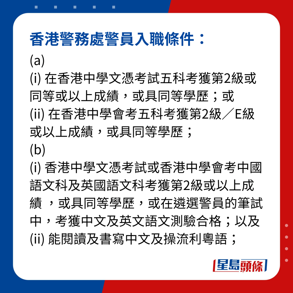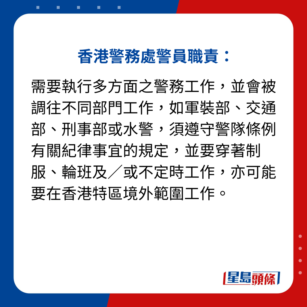 · 薪酬:HK$28,095 - HK$41,155(警務人員薪級表第4點至第17點)
