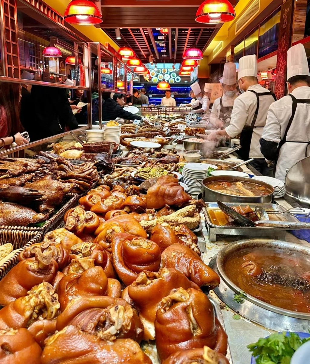 ▲汕頭打卡美食攻略2024|3. 吳記富苑 客人在十幾米長的排檔自選生熟打冷美食,海鮮、鹵水、生腌、特色小吃等幾百種,必吃隆江豬腳。(圖片來源:小紅書@椰椰子ye)