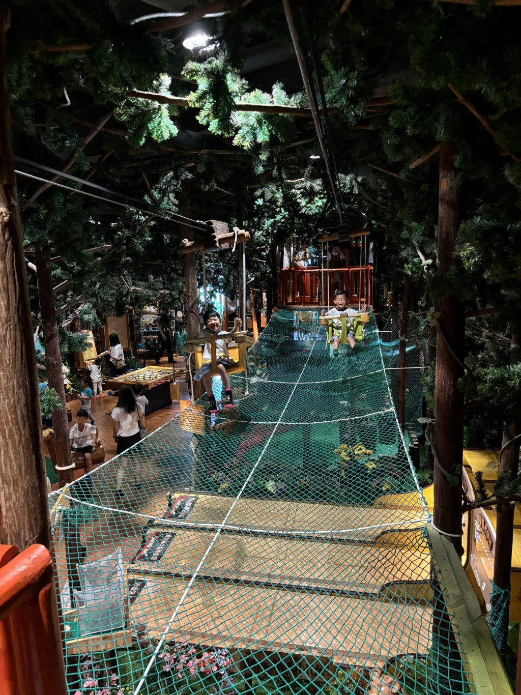 Gjump面積極大,占地約20,000呎,內里有多種運動設施如跳彈床、攀巖、波波池、充氣城堡、空中滑索、滑梯等應有盡有;每日更會有特別時段提供跳彈床表演,還會有彈床高手與小朋友互動,為孩子帶來最新最刺激的彈床樂趣。而最受歡迎的必然是高空拓展障礙賽道,小朋友需要在300多米總長的高空賽道來回一次,建議較大的小朋友自己嘗試挑戰,而小一點的孩子可由大人陪同一邊行一邊拉滑輪繩,讓孩子可安心順利地完成整個賽道。