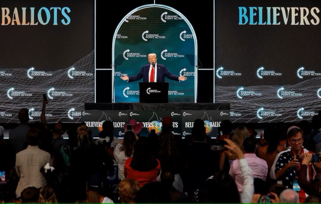 保守派基督徒組織“轉折點行動”(Turning Point Action)26日晚間于佛羅里達州西棕櫚灘(West Palm Beach)舉辦活動,前總統特朗普(Donald Trump)出席并發表演說。