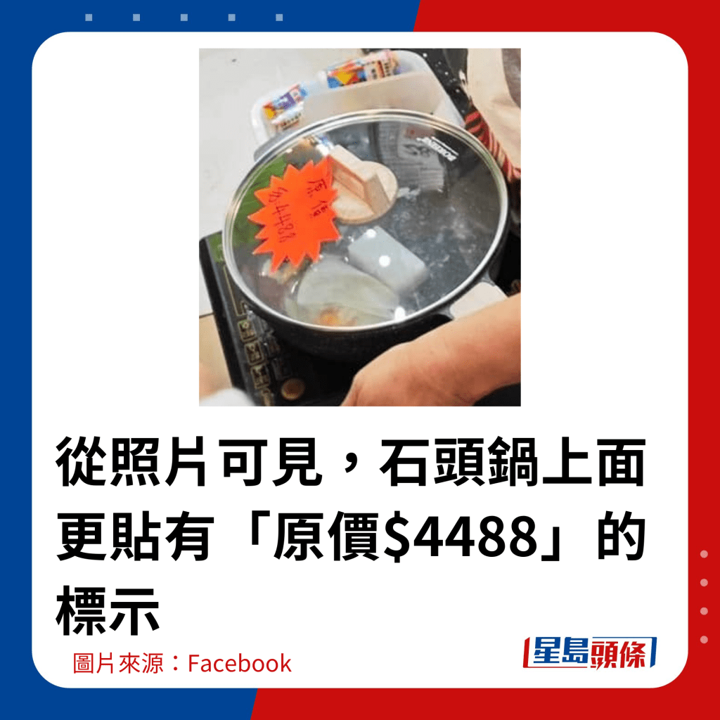 ▲從照片可見,石頭鍋上面更貼有「原價$4488」的標示