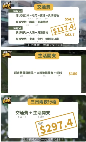 抵達營地的時候,小蔥帶備帳篷和足夠三天所需的干糧。因此三日兩夜香港之旅的消費主要用于交通和生活必需品,共花費297.4元。最驚訝的是第二天,小蔥一分錢都沒有花,她只徒步來回貝澳營地及望東灣。