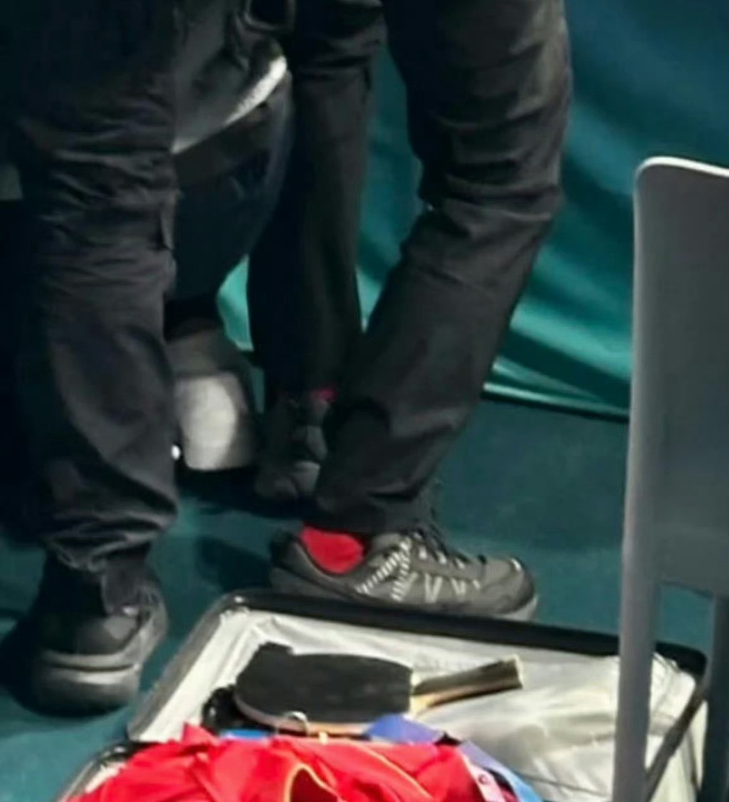 ▲網傳相片見王楚欽的球拍上有清晰鞋印。