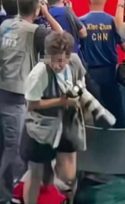 ▲有網民發現疑似踩斷王楚欽球拍的攝記。