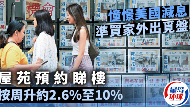 市場憧憬美國減息在即,在利好消息下,進一步增強買家入市信心,睇樓氣氛即時轉活。綜合物業代理統計顯示,周六及日各大指標屋苑預約睇樓量,按周上升約2.6%至10%。業界人士指,料9月減息幾乎成定局,對市場屬利好信號,加上缺乏焦點新盤,睇樓量回流二手市場。