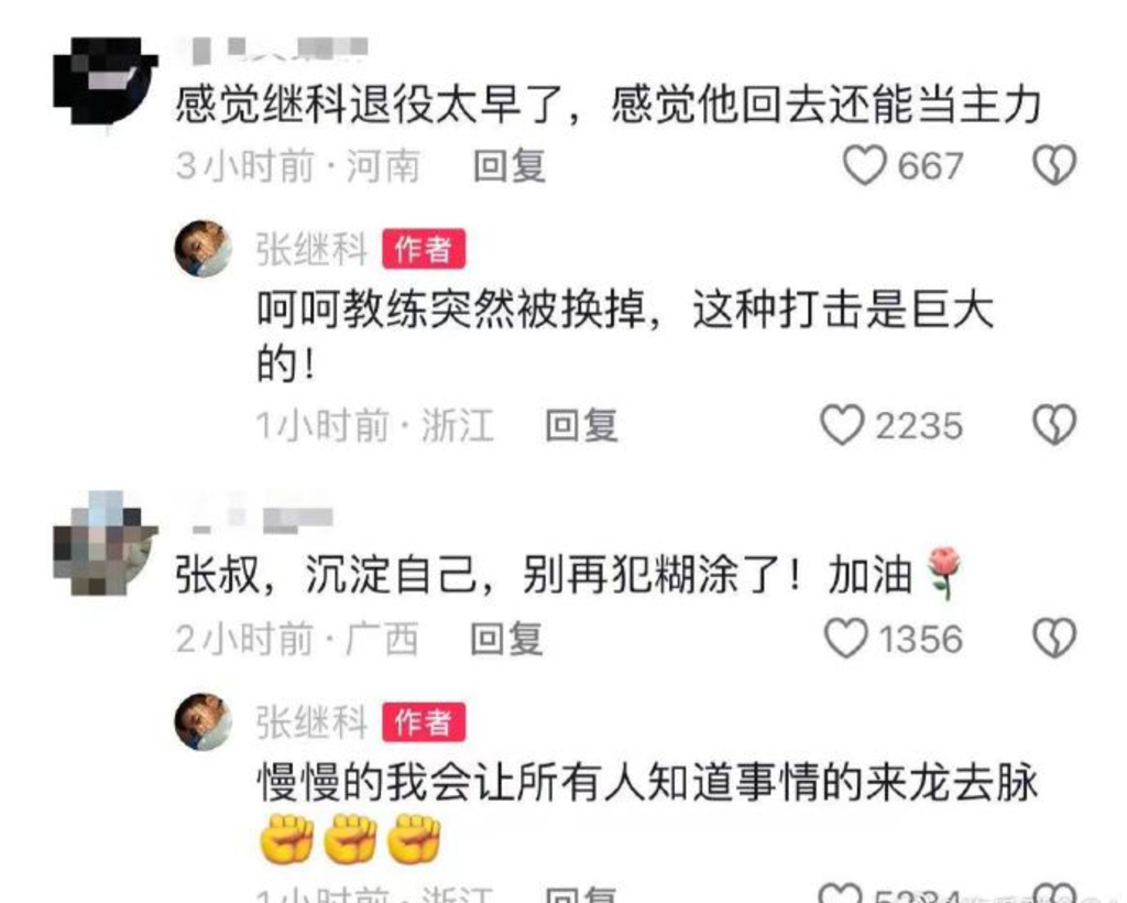 關鍵字“景甜取關了張繼科”、“張繼科 我會讓所有人知道來龍去脈”、“張繼科 教練被換打擊巨大”等話題,昨(8日)霸占微博熱搜榜,從流傳的截圖中可見,網友在社群平臺鼓勵留言:“張哥,沉淀自己,別再犯糊涂了!加油”,釣出張繼科回應:“慢慢的,我會讓所有人知道事情的來龍去脈”,另一位網友則評論道:“感覺繼科退役太早了,感覺他回去還能當主力”,張繼科則說:“呵呵,教練突然被換掉,這種打擊是巨大的!”,雖然張繼科的回應有些毫無頭緒,相關實情內幕引發大批網友好奇。