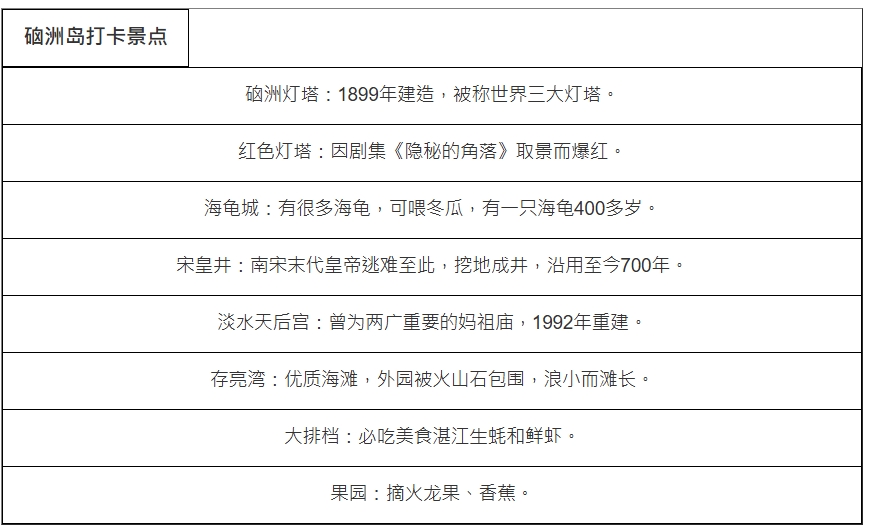 交通:湛江市東南碼頭搭渡輪,航程35分鐘,船票¥10