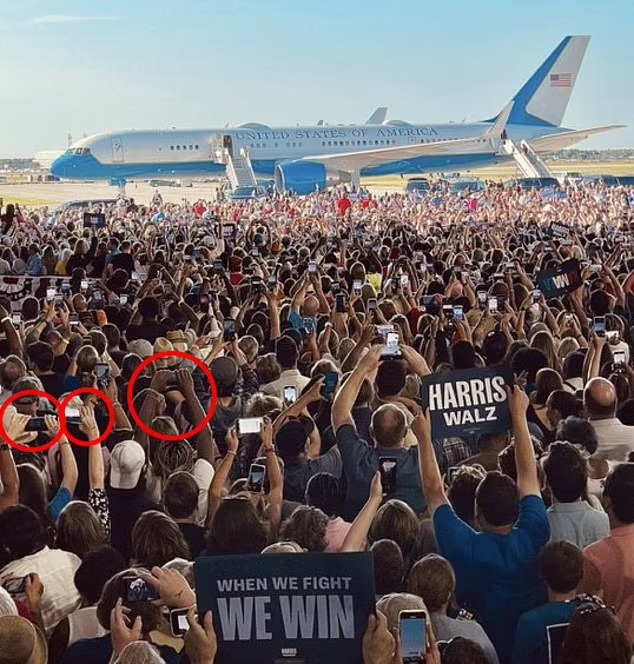 ▲特朗普指稱哈里斯上周到密歇根州拉票時大批支持者歡迎的照片曾以AI改圖。x