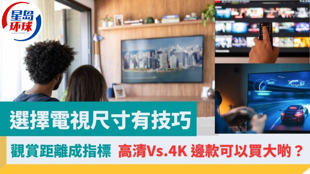 全高清畫質電視的最佳觀賞距離(cm)是︰電視尺寸×4;4K超高清畫質電視的最佳觀賞距離(cm)是︰電視尺寸×3。舉個例子,如購買一部55吋的4K電視機,電視與座位的距離應有165cm(1.65米)左右。