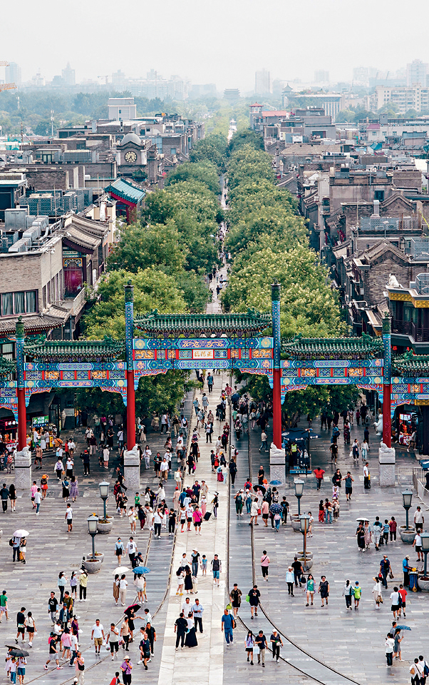 ▲從正陽門箭樓往南望,熱鬧的前門大街及遠處的永定門都一覽無遺。