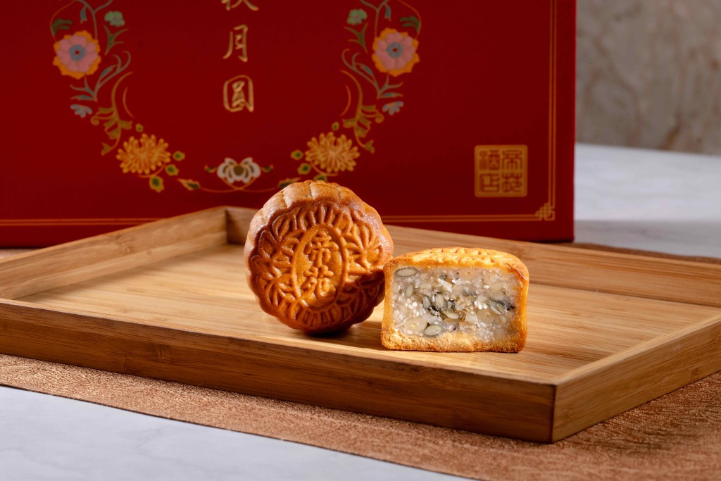 ▲麥芽糖高纖果仁月餅,精挑優質雜錦果仁及麥芽糖,味道天然無添加,高纖健康又飽肚。($348 帝苑酒店)