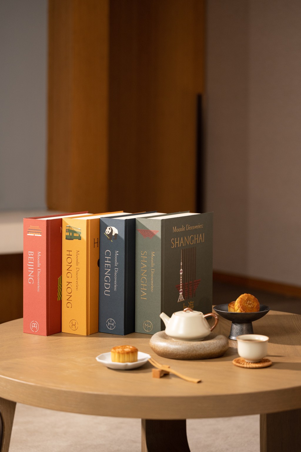 ▲月下旅人月餅禮盒,4款禮盒以香港、北京、上海和成都為主題,內有帕爾瑪火腿、粒粒板栗、五黑堅果和藤椒火腿口味。($528 盒 居舍系列)