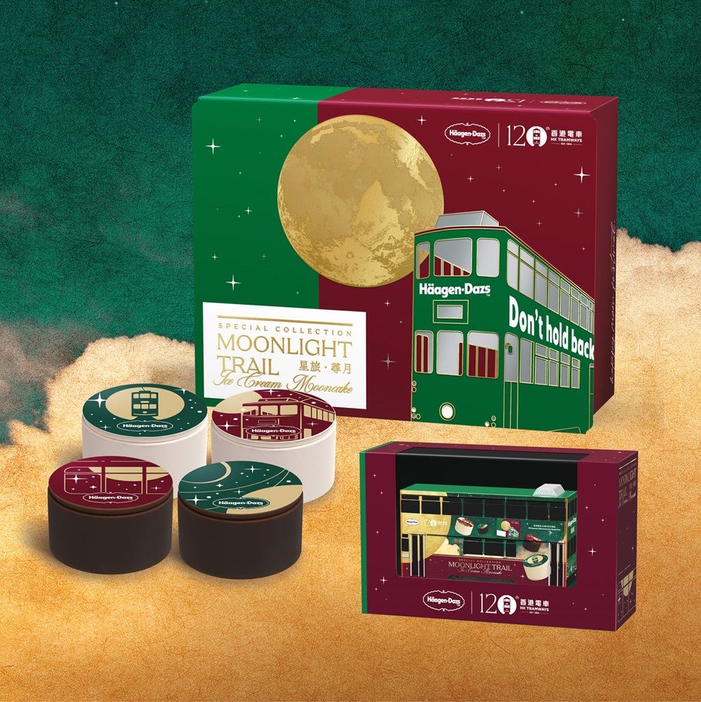 由設計師André Fu操刀的居舍系列中秋月餅“月下旅人”,分別以香港、北京、上海和成都4個城市為禮盒主題,以旅行日志形式記錄這4個城市的獨特故事。美心月餅及東海堂就分別與SPY x FAMILY及迷你兵團合作,推出間諜家家酒月餅禮盒及迷你兵團復古雙反相機月餅禮盒。H?agen-Dazs?趁電車創立120周年,打造星旅.尋月雪糕月餅,隨盒附送1輛1比120的電車模型,值得收藏。