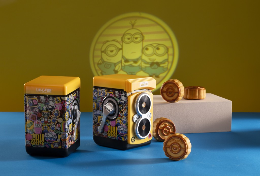 ▲迷你兵團月餅禮盒,迷你兵團復古雙反相機的造型富玩味,開掣及轉動手把可看到卡通投影,內有蛋黃蓮蓉月餅。($178 美心月餅)