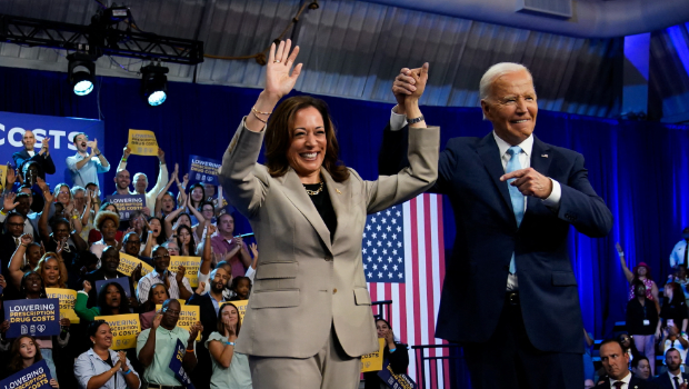 美國總統拜登與副總統哈里斯周四在馬里蘭州舉行集會,宣揚其政府降低10款重要處方藥物的價格。這是拜登7月21日宣布退出總統競選后,首次重返競選舞臺,與哈里斯“合體”造勢。他變成民主黨總統候選人哈里斯的“綠葉”,在愉快氣氛中展現團結。