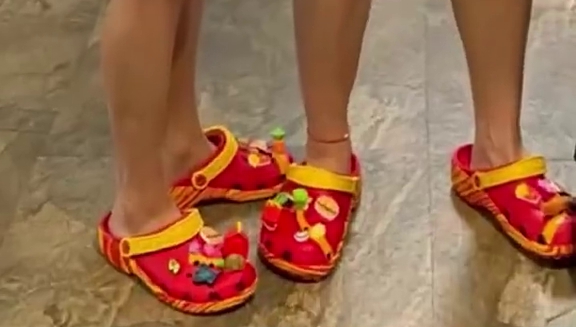 ▲全紅嬋陳藝文二人穿同款拖鞋。