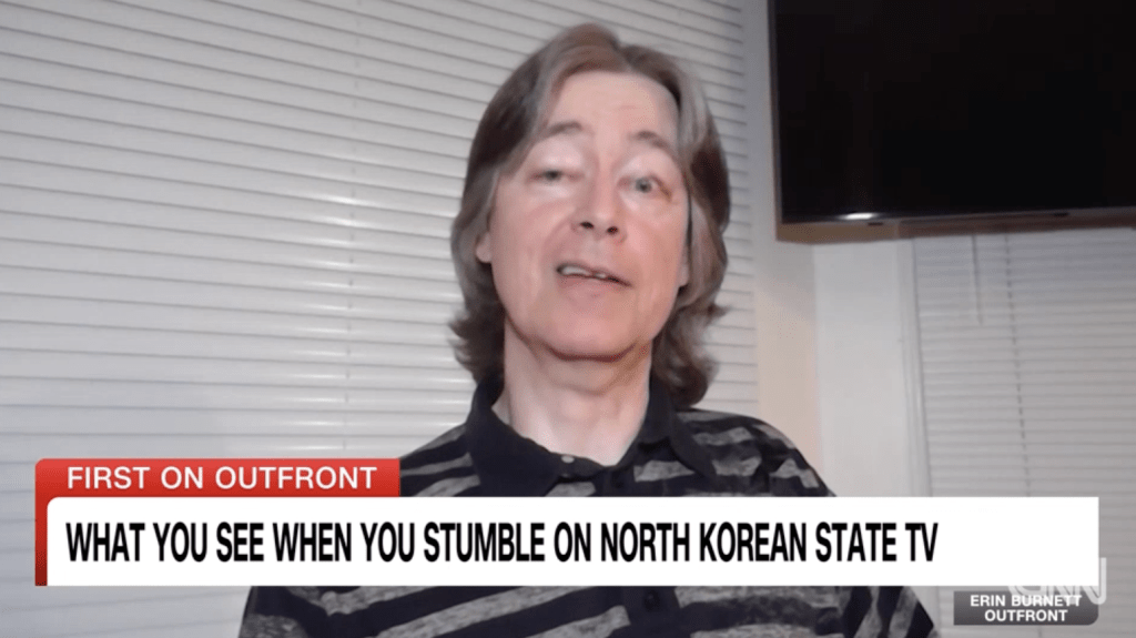 ▲費爾利因成功“盜錄”朝鮮電視節目而爆紅。CNN訪問畫面截圖