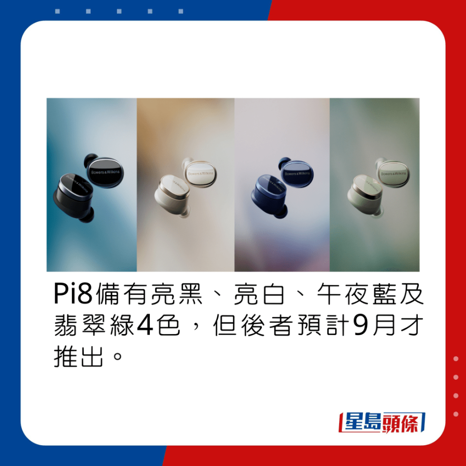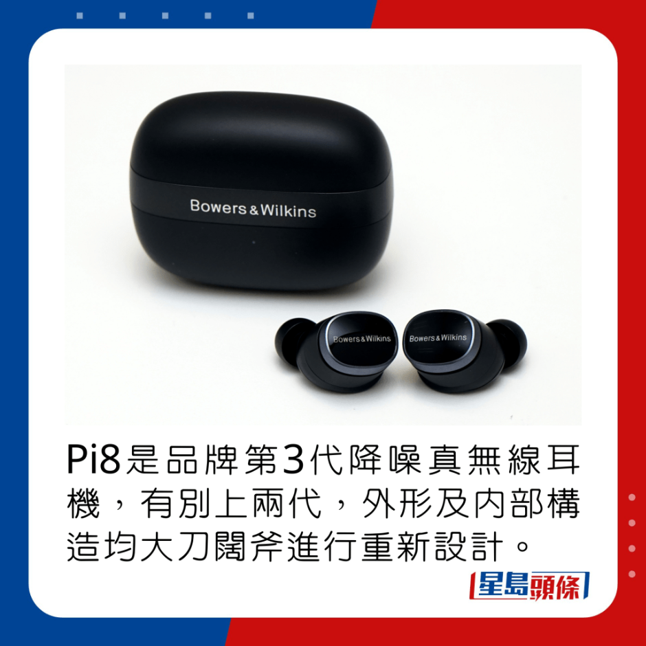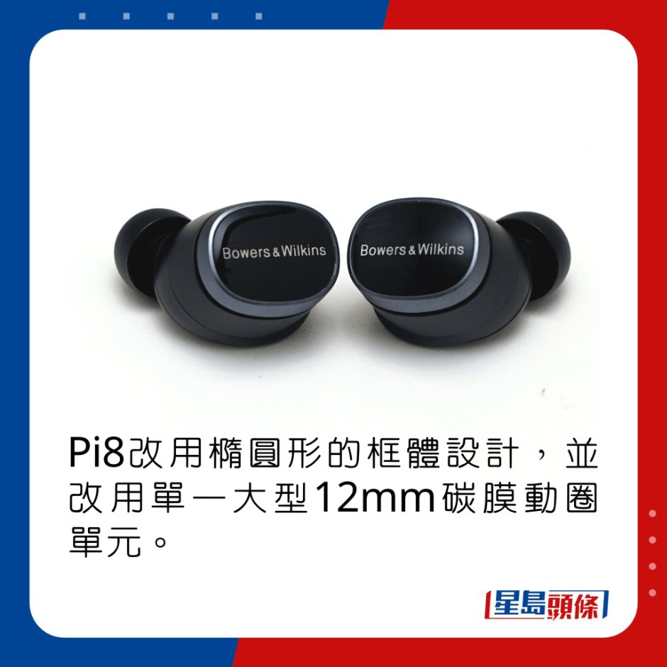 過去3年,B&W先后推出過PI5、PI7、Pi5 S2及Pi7 S2共4款降噪真無線耳機,來到今日試玩的新旗艦Pi8,已經進化至第3代,基本上由外形、內部構造以至驅動單元都經過革新。先是耳機換上橢圓形框體,配以拋光觸控面板,表面印有品牌字樣,同時加入金屬色環包邊,感覺更高貴典雅,且有亮黑、亮白、午夜藍及翡翠綠4色選擇。