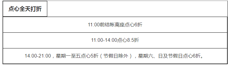 營業時間:早市07:00-11:00;午市11:00-14:00;下午茶14:00-17:00;晚市17:00-21:00