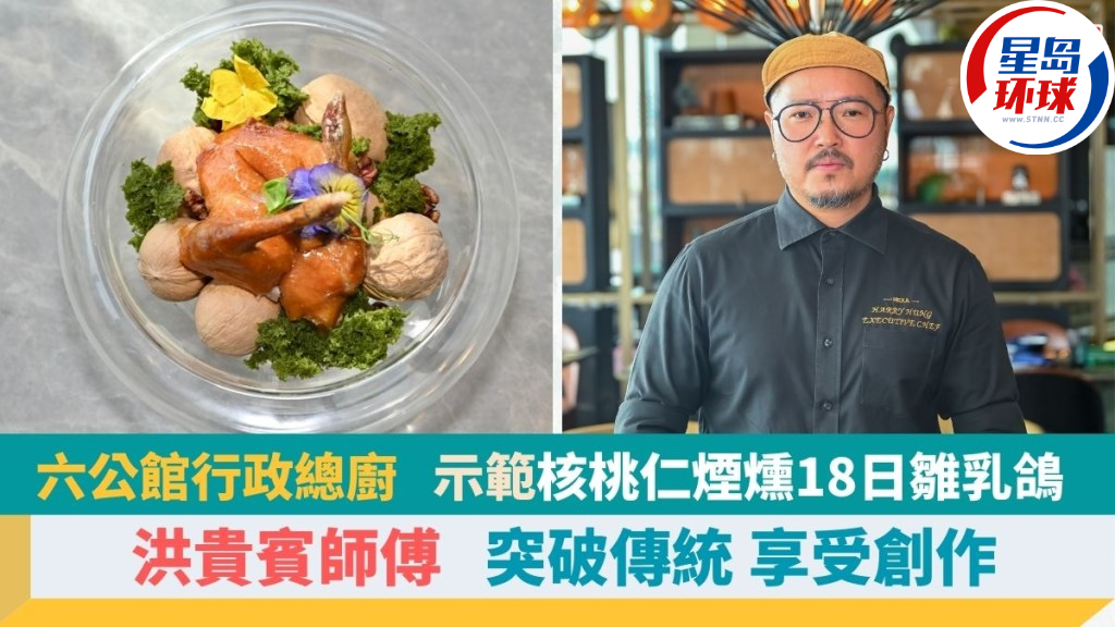 中菜飲食潮流日新月異,要烹制出令人印象深刻的美食,除了手藝及經驗外,還講究師傅如何與時并進,將合時的煮食技巧融合在料理中。像是六公館行政總廚洪貴賓師傅,擅長利用嶄新入廚技巧,為傳統菜式呈現耳目一新的感官享受。洪師傅分享的核桃仁煙熏18日雛乳鴿食譜,便同時滿足味覺、視覺及嗅覺。