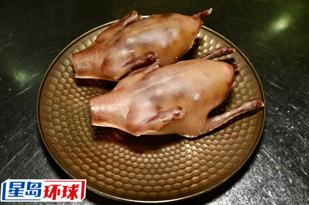 1.采用約18天大的乳鴿,肉嫩且皮下脂肪少,容易入味。