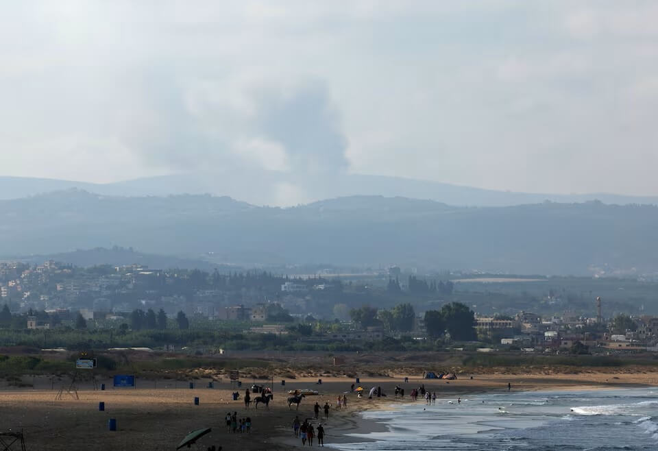 ▲以色列邊境靠近黎巴嫩一側25日冒出煙霧。 路透社