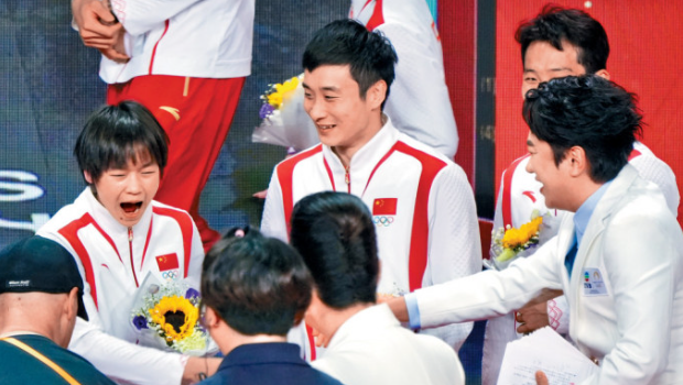 巴黎奧運會內地奧運健兒代表團訪港掀起熱潮,重頭戲之一“奧運健兒大匯演”昨晚在灣仔伊利沙伯體育館上演,氣氛熱烈,運動員出場和表演時的掌聲與歡呼聲不斷,人氣王全紅嬋更搞笑地“祝大家恭喜發財”,引來全場觀眾回響。這股奧運熱潮將延續至今晨,眾人將兵分兩路到伊館及維園泳池,全紅嬋及陳芋汐屆時將上演“水花消失術”,讓市民欣賞金牌選手的妙技。