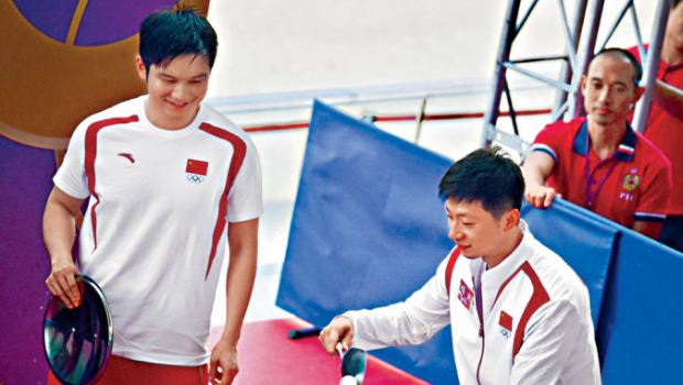 巴黎奧運會內地奧運健兒代表團繼續訪港3日行程,昨晨分頭出動,部分人到訪將軍澳消防及救護學院,期間即場獻技,乒乓國手馬龍和樊振東先在“迷你枱”上同時打兩個乒乓球,及后更換上煲蓋和鑊鏟迎戰青年代表,盡顯功架。泳手潘展樂則在陸上示范泳姿,又稱希望將“飛魚”稱號留給下個游得快的人;隊友覃海洋則將蛙泳比作“打麻將”,引爆全場笑點。代表團中午集合到中聯辦出席午宴,下午則暢游太平山頂和維港。對烏龜情有獨鐘的跳水運動員全紅嬋更抱著公仔在山頂欣賞美景。