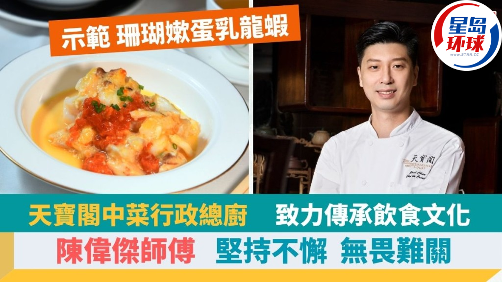 能成為大廚,必須經過不少磨練和挑戰,好像有超過30年烹制粵菜經驗的陳偉杰師傅(香港喜來登酒店天寶閣中菜行政總廚),就是堅持不放棄而闖出名堂。陳師傅擅長炮制時令海產,他原創的珊瑚嫰蛋乳龍蝦,精挑肥美的乳龍蝦及膏蟹為主要食材,令海鮮味道更具層次。