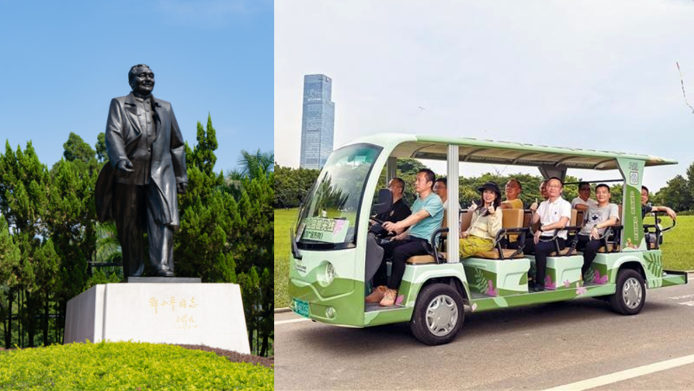 據了解,觀光車采用淡雅的莫蘭迪色系綠色主基調涂裝,與蓮花山公園整體景觀相得益彰,突出“山海連城,綠美深圳”主題。