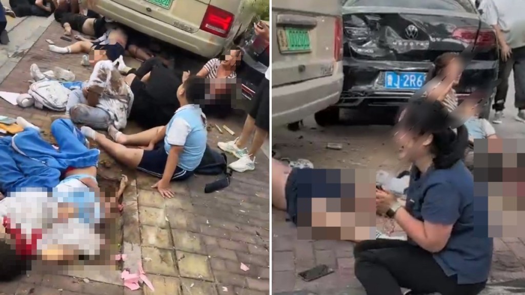 有網民在微博指,事發時一輛中型巴士沖入人群,撞倒十幾名學生和家長?,F場照片所見,有多名傷者被撞倒,亦有家長抱著孩子坐在地上嚎哭。