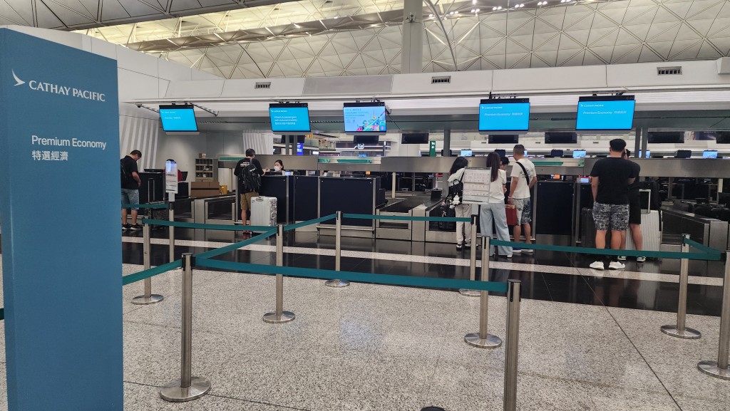 ▲國泰公布部分航機停飛,取消周一至周三共48班航班,昨日(2日)未見未見大批旅客排隊。