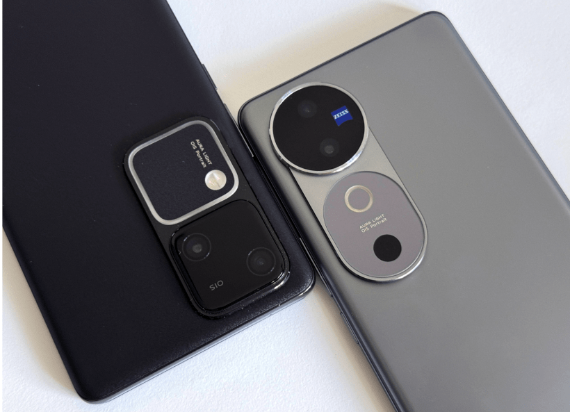 ▲V40 5G(右)終于升級蔡司鏡頭,并沿用50MP廣角及50MP超廣角組合。