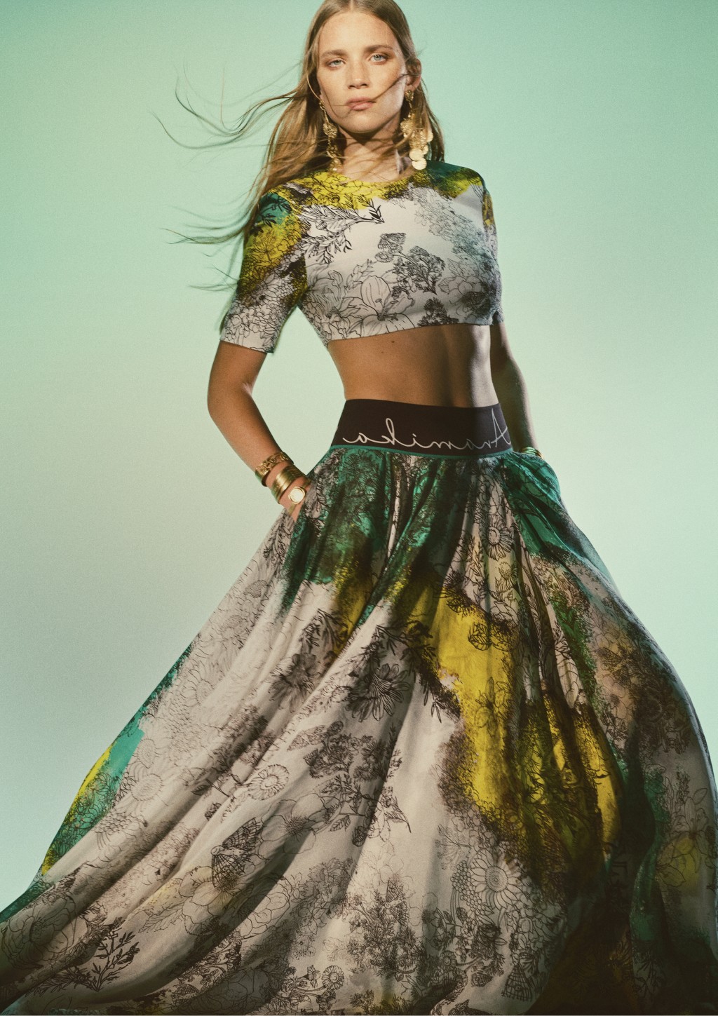 ▲H&M x Anamika Khanna設計師聯乘系列花朵圖案短身上衣/$549、真絲混紡花朵圖案長裙/$2,490。