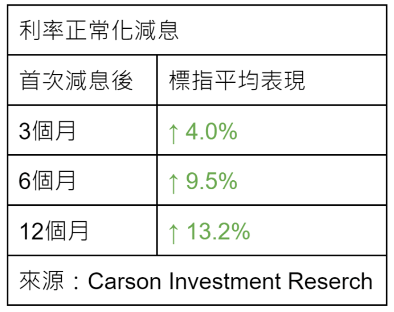 若聯儲局是進行利率正?;臏p息(包括1984、1989、1995及2019年),標指普遍表現不錯,在首次減息后3個月、半年及一年,平均升3.4%、9.5%及13.2%。