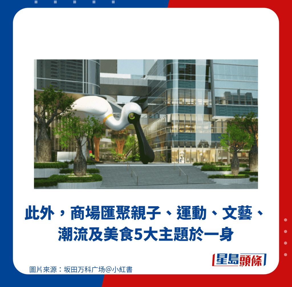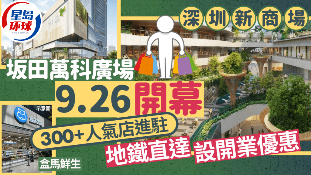 坂田萬科廣場以“自然有生活”理念,打造融合自然與現代商業的全新空間,并設立24小時全天開放的生態公園。此外,商場匯聚親子、運動、文藝、潮流及美食5大主題于一身,引進超過300間人氣品牌,當中更有寰映影城、盒馬鮮生、NITORI、慫火鍋、MINISO等備受港人熱捧的商店。為慶祝商場開幕,多間食肆及零售商店亦有推出開業期間限定優惠,包括鞋屐服飾8折、火鍋全場6.8折等。