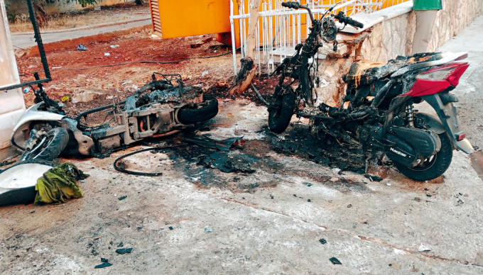 ▲在黎巴嫩巴勒貝克市拍攝的照片,顯示的是通訊設備爆炸損毀的電單車 。