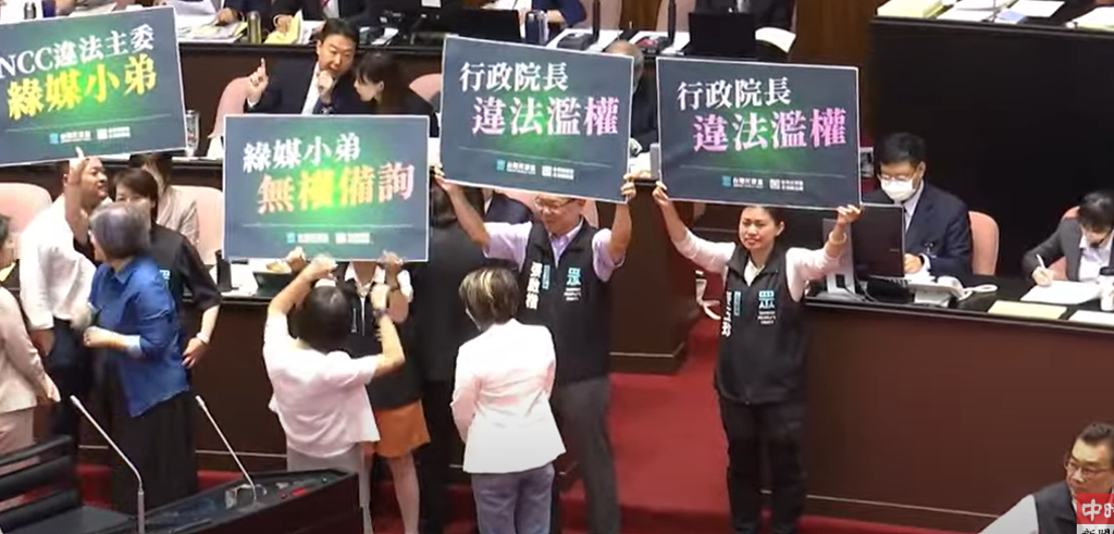 新會期首場總質詢昨(20日)登場,8名白委便手持“行政院長,違法濫權”、“綠媒小弟,無權備詢”等手板,要求“通訊傳播委員會”(NCC)代理主委翁柏宗出去。其中白委黃珊珊遭政論節目質疑,舉牌時被一群綠委包圍,疑似跟綠委“有說有笑”,對此,媒體人張禹宣則認為“怎會感到意外,怡然自得的表情向旅居在外的旅人”。不過,觀看相關影片可發現,不只黃珊珊,“立委”陳昭姿、張啟楷在舉牌抗議同時,也跟綠委都有簡短的對話,但內容并無法從影片中得知。