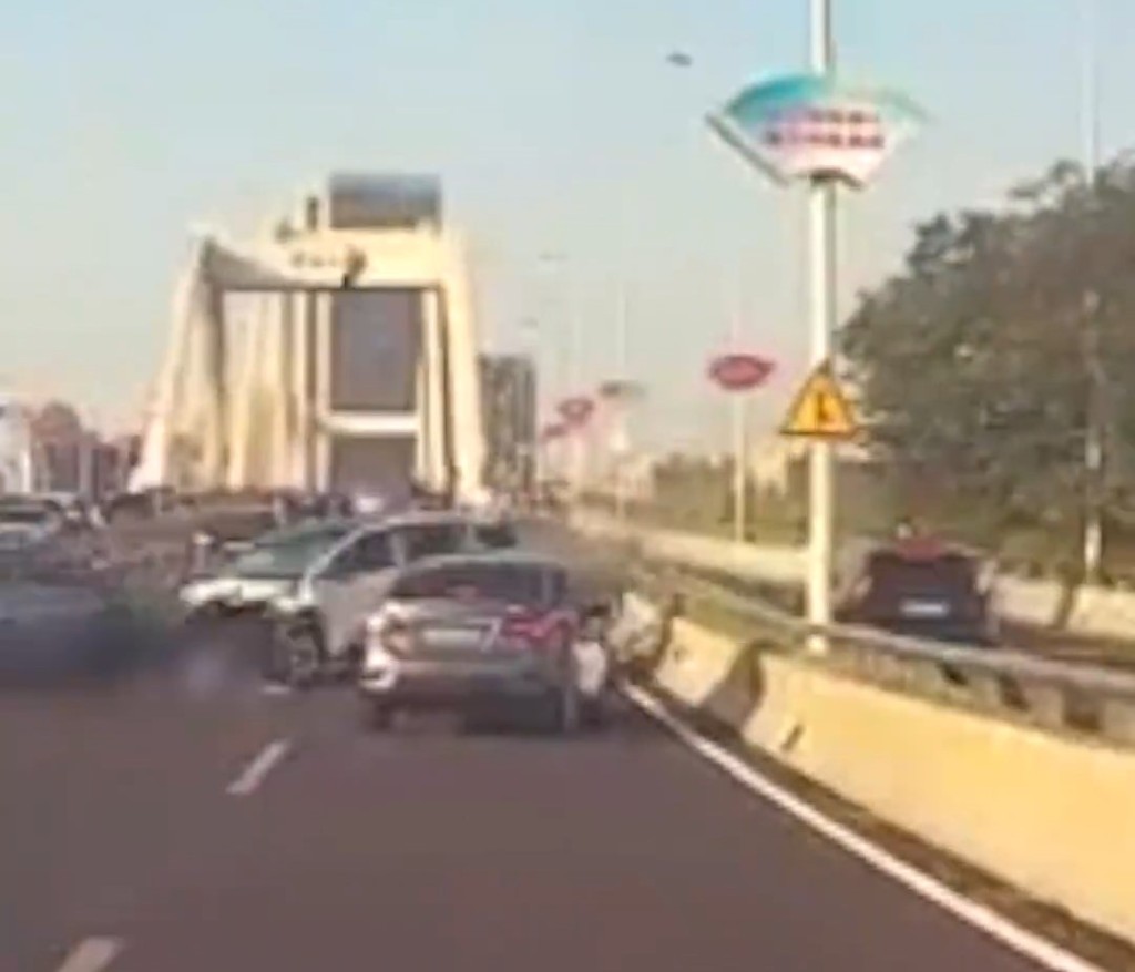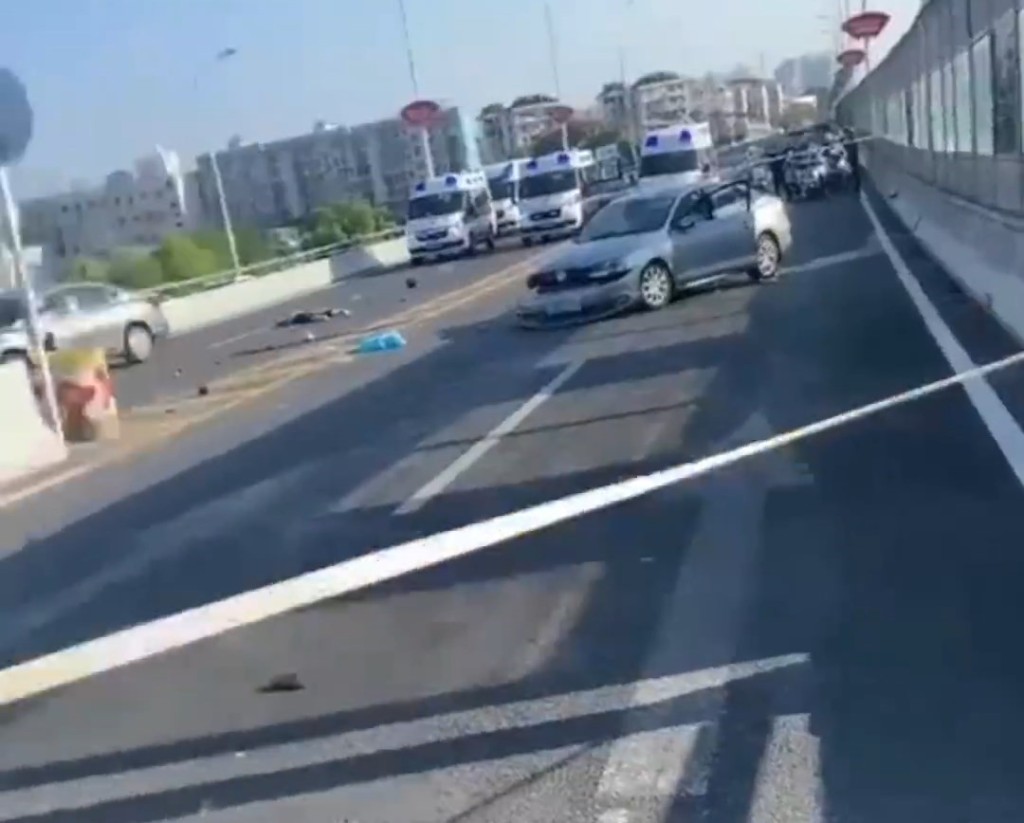 網上有影片顯示,一大橋上,一白色車輛從對向車道駛來,逆行撞擊多輛機動車及電動車。事發后,多輛救護車到場,現場交通大受影響。